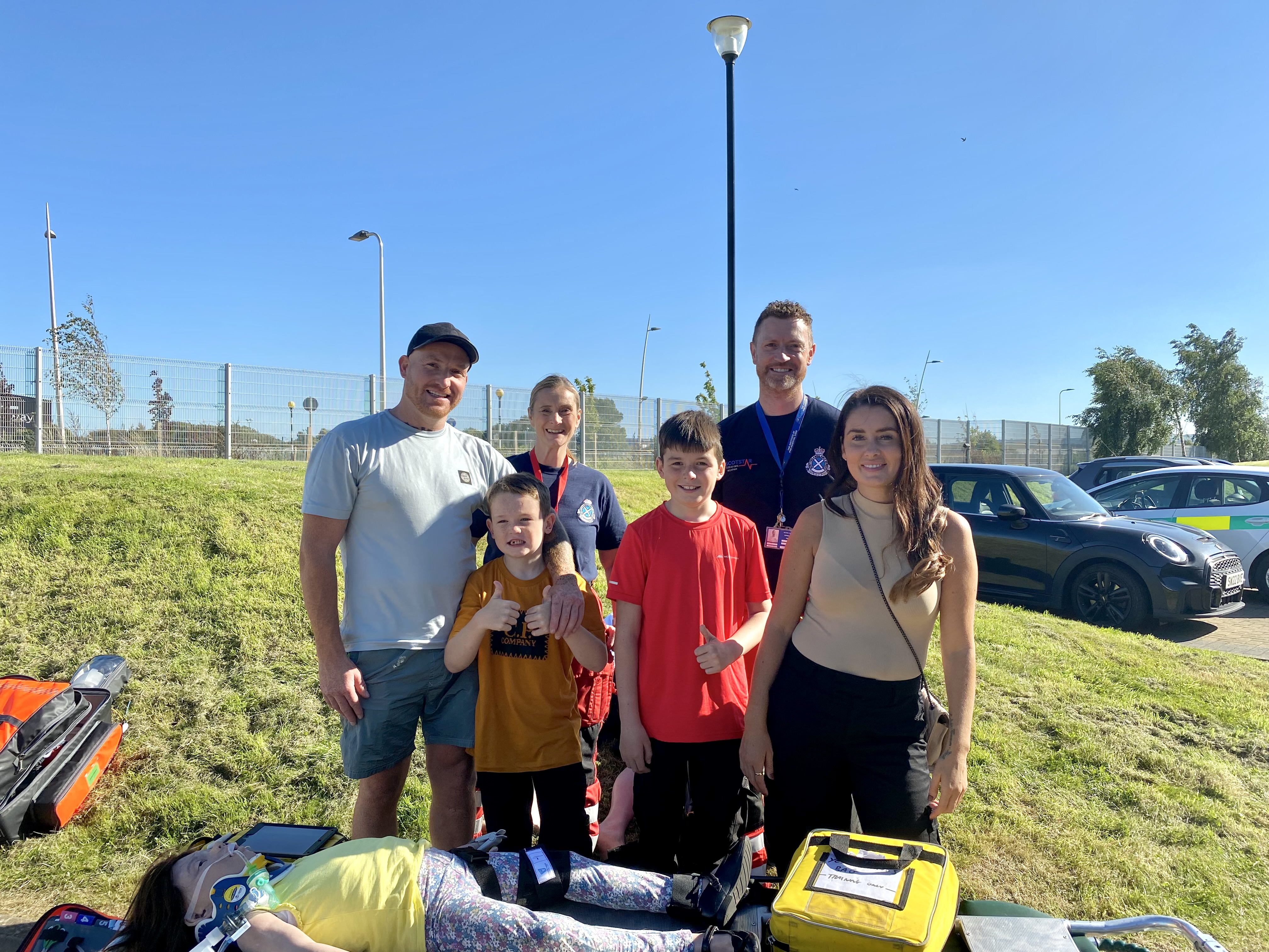 A family whose young boys were seriously injured in a road traffic accident have visited the Scottish Ambulance Service’s Scottish Specialist Transfer and Retrieval (ScotSTAR) base in Glasgow to see a live demonstration of the new training mannequins their donation has helped fund.